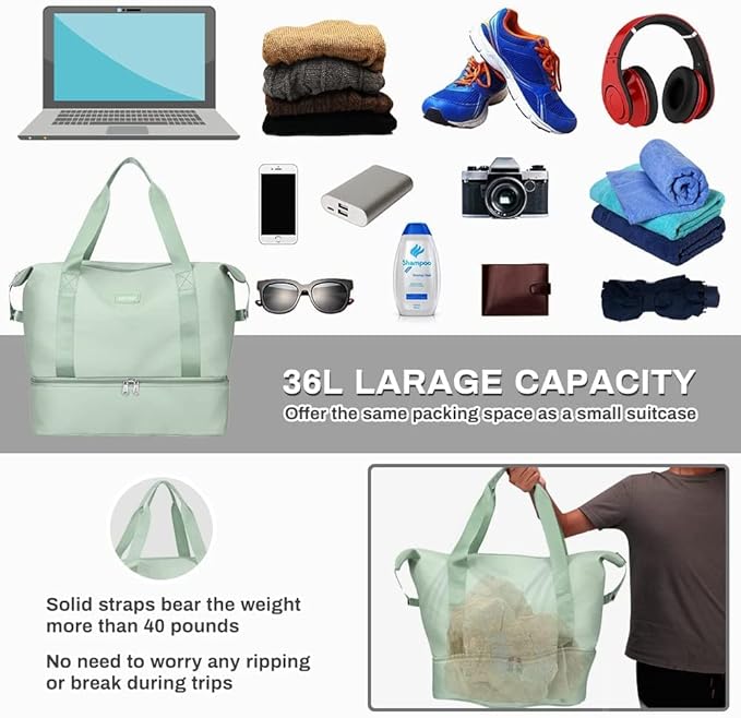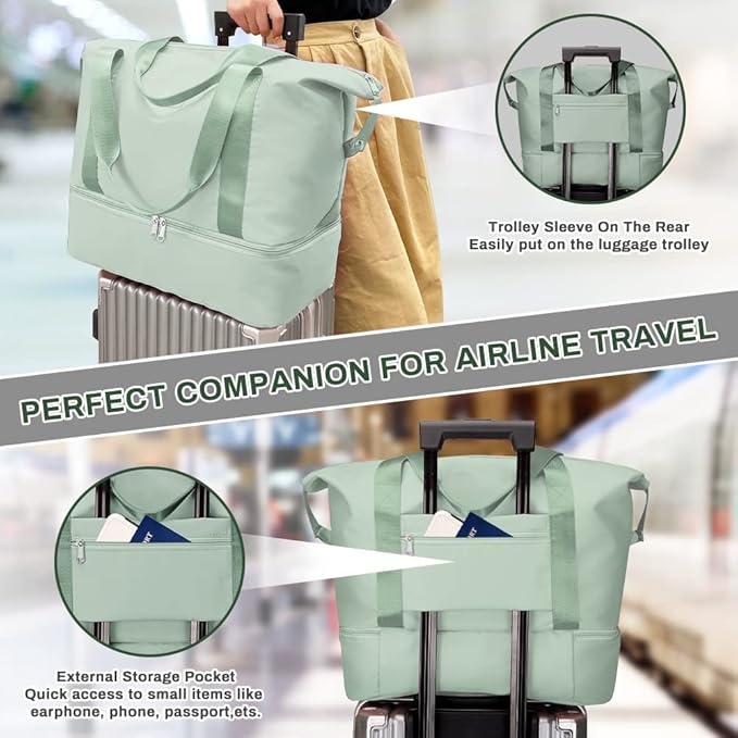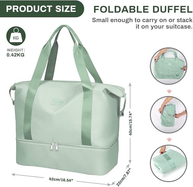 - NORMAL DIMENSION: 40 x 22 x 30cm. Expansion Dimension: 40 x 23 x 45cm. 41.40 Liters. It is foldable bags for travelling for women.
