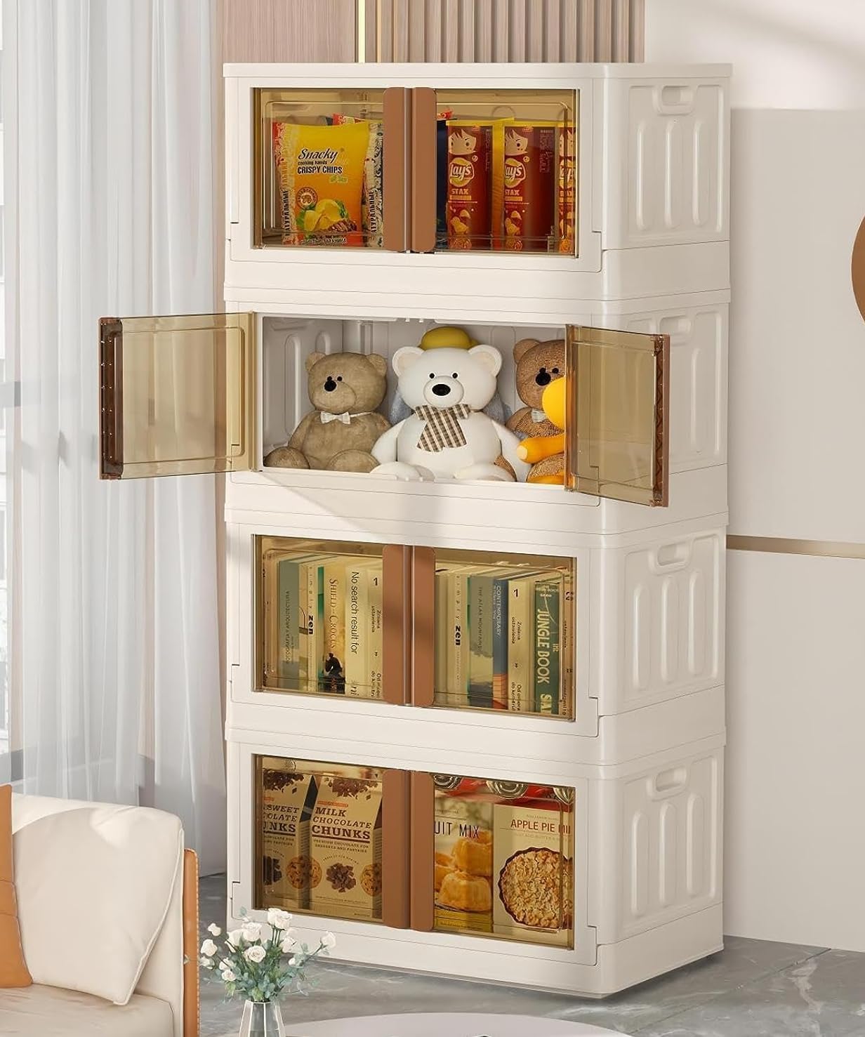 Details: Description Introducing our versatile and convenient Plastic Foldable Cupboard, designed to meet all your storage needs with style and efficiency. Whether you're looking to organize your kitchen, home, or office, this cupboard offers unmatched flexibility and functionality. 1. FOLDABLE DESIGN: Save space when not in use. This cupboard can be easily folded and stored away, making it perfect for small spaces. 2. TRANSPARENT DOORS: Each shelf comes with a transparent door, allowing you to see the contents without opening the cupboard, ensuring quick and easy access. 3. CUSTOMIZABLE SHELVES: Enjoy the flexibility of choosing the number of shelves in each cupboard. You can add new shelves to increase the tiers as needed, tailoring the storage to your specific requirements. 4. QUALITY MATERIAL: Made from virgin plastic beads, this cupboard ensures durability and a long lifespan, providing a sturdy and reliable storage solution. 5. MULTIPURPOSE USE: Ideal for use as kitchen racks, home storage, or for organizing various items in any room of your house. 6. SPACE-SAVING STORAGE: When dismantled, it takes up minimal space, making it easy to store when not in use. 7. PORTABLE AND LIGHTWEIGHT: Easily move the cupboard from one place to another without any hassle, thanks to its lightweight construction. This Plastic Foldable Cupboard combines practicality with modern design, offering an ideal storage solution for any setting. Maximize your space and keep your belongings organized with ease.
