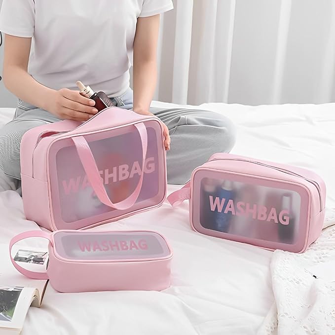 JD FRESH 3 Pieces Transparent Makeup Organizer Pouches/Makeup Bag for Women/Cosmetic Pouch/Toiletry Kit Bag for Travel(Large-Medium-Small)