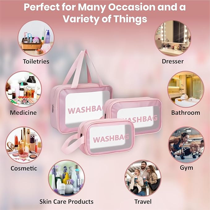 - ๐๐ฎ๐๐ ๐๐ผ ๐๐ฎ๐ฟ๐ฟ๐ & ๐จ๐๐ฒ: Each pouch has a convenient handle for easy portability, making it perfect for your handbag, backpack, or luggage. The translucent design allows quick access to your items, making it an ideal makeup bag for women.