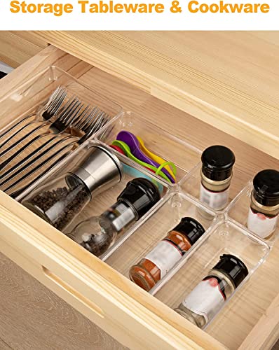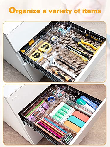 Details: Description Introducing our Drawer Organizer Tray – the epitome of efficient storage, designed to transform your drawers into neatly arranged havens of organization. In the heart of the kitchen, our cutlery organizer for kitchen drawers takes charge, offering a designated space for utensils, ensuring each tool has its place. The compact design of our small drawer organizer optimizes space, turning chaotic drawers into streamlined culinary hubs. For the makeup aficionados, our makeup organizer drawer is a game-changer, providing a stylish sanctuary for your cosmetic treasures. The acrylic drawer organizer not only keeps your makeup in check but also adds a sleek touch to your vanity. Office spaces find a savior in our drawer organizer tray for stationery, where pens, clips, and notes find their designated spaces, fostering a clutter-free workspace. The flexible and foldable design effortlessly adapts to various drawer sizes, ensuring seamless integration into any environment. Designed with durability in mind, our acrylic and plastic drawer storage organizers offer a clear view of contents, making it easy to locate items with just a glance. No more rummaging through a sea of objects – our organizer brings order to the drawer chaos. Upgrade your drawer game with our Drawer Organizer Tray – a stylish fusion of form and function. Say farewell to the days of disarray and welcome a new era of organized simplicity in every drawer of your home!