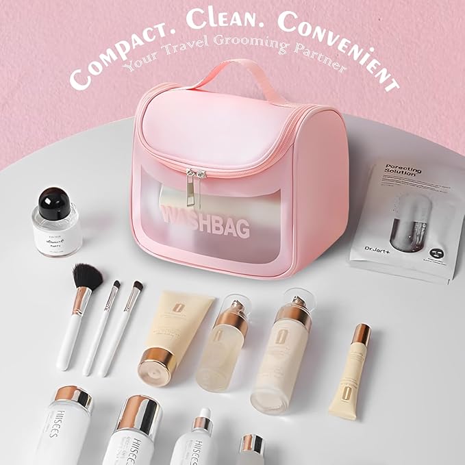 JD FRESH Large Transparent Makeup Organizer Pouch/Travel Cosmetic Bag for Women & Men/Portable Toiletry Kit/Clear Makeup Storage Pouch for Daily Use & Travel Essentials