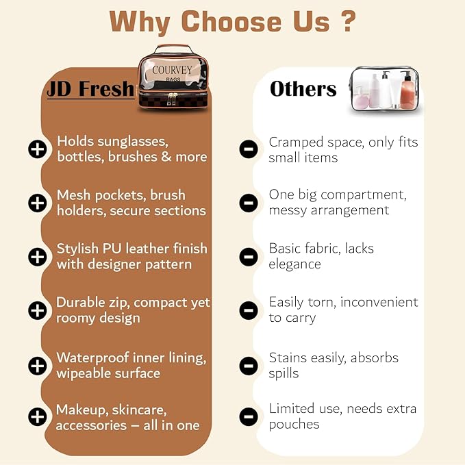 JD FRESH Transparent Cosmetic Case/Makeup Organizer/Toiletry Pouch for Men and Women/Portable Travel Bag/Waterproof Vanity Bag for Women/Makeup Essentials (Brown)