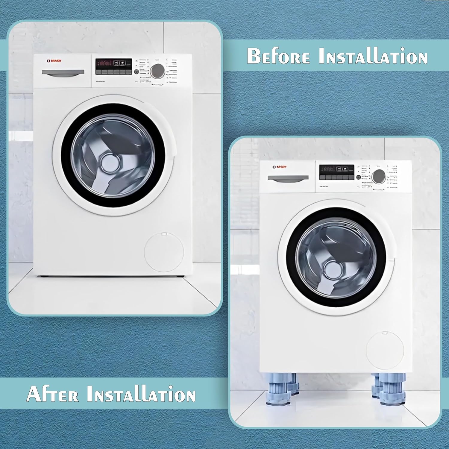 - ๐๐๐ฃ๐ฎ๐ฌ๐ญ๐๐๐ฅ๐ ๐๐๐ฌ๐ข๐ ๐ง: The anti-vibration washing machine support features an adjustable design, allowing you to increase the height as needed. These vibration pads elevate your appliance to prevent moisture and simplify cleaning.