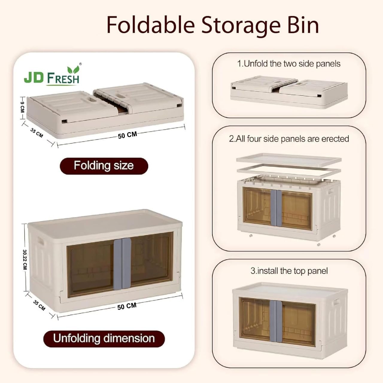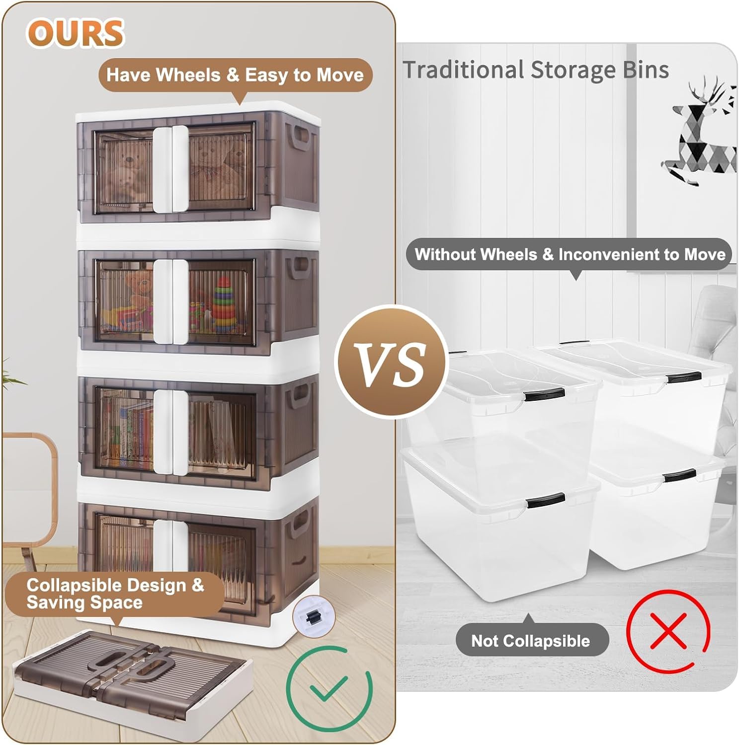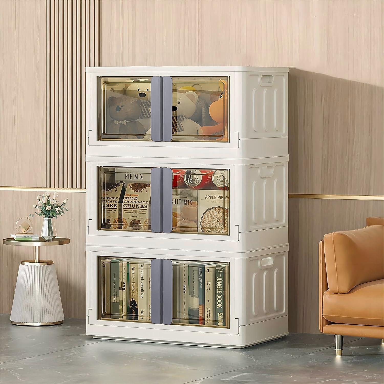- ๐จ๐๐ฒ๐ฟ-๐๐ฟ๐ถ๐ฒ๐ป๐ฑ๐น๐ ๐๐ฒ๐ฎ๐๐๐ฟ๐ฒ๐: Access your items quickly through the top lid or fold-down front. The transparent bins help you see what's inside at a glance, while the collapsible design saves space when not in use.